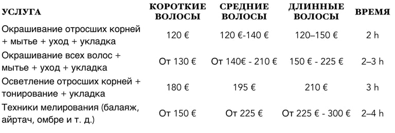 Все остальные процедуры окрашивания, коррекции, метаморфозы, осветления волос, осветления блонда такими техниками, как: балаяж, ручные техники, шатуш, омбре, айртач, фронт блонд / контуринг и другие, определяются индивидуально для клиента и обсуждаются с ним.